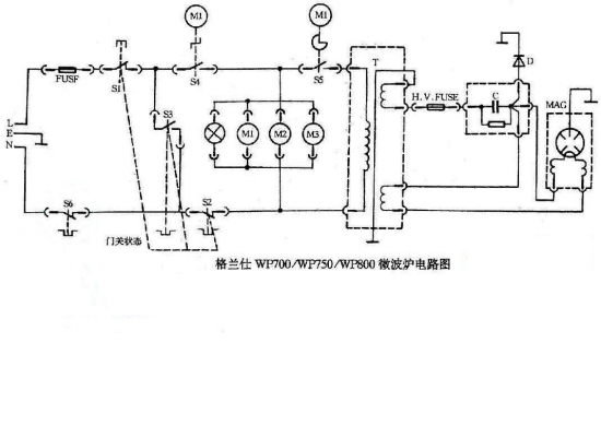 下面以格兰仕WP700---900微波炉为例,结合电路图中的电路符号和实物,讲解各元器件物理性能和在电路中的作用,以及好坏的检测方法。根据我们的经验,认为只有对电路和元器件认识充分,才能在修理中得心应手。